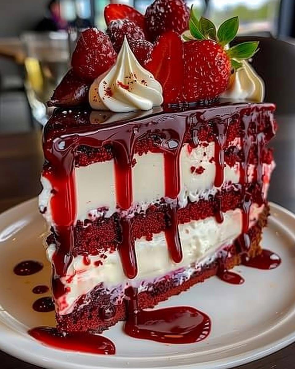 Strawberry Cheesecake! This dessert combines the rich, velvety flavor of red velvet